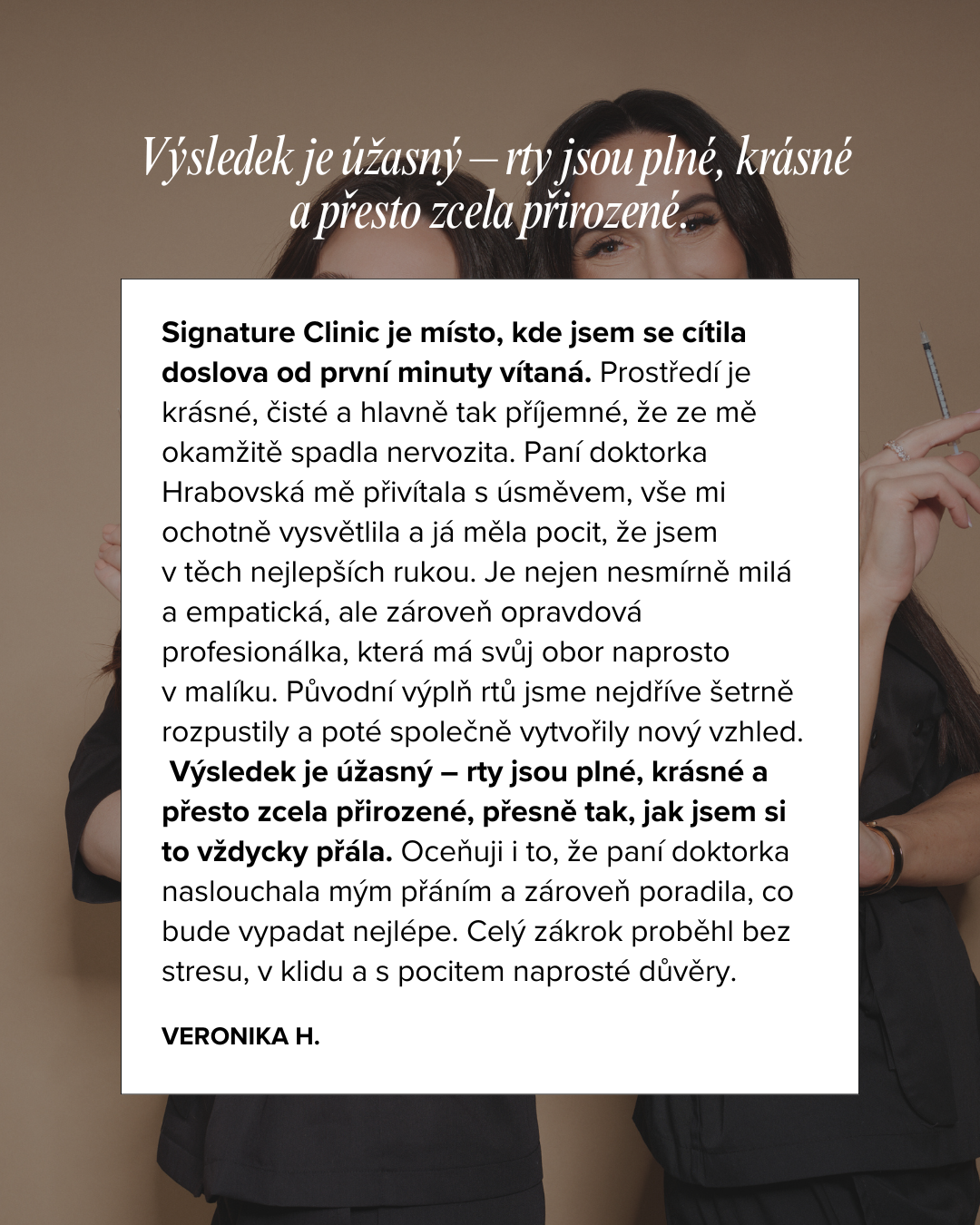 Signature Clinic je výsledkem jejich rozhodnutí dělat věci jinak. S respektem. S klidem. A s vírou, že skutečná krása začíná tam, kde se žena cítí v bezpečí – a kde ví, že je v dobrých rukou.